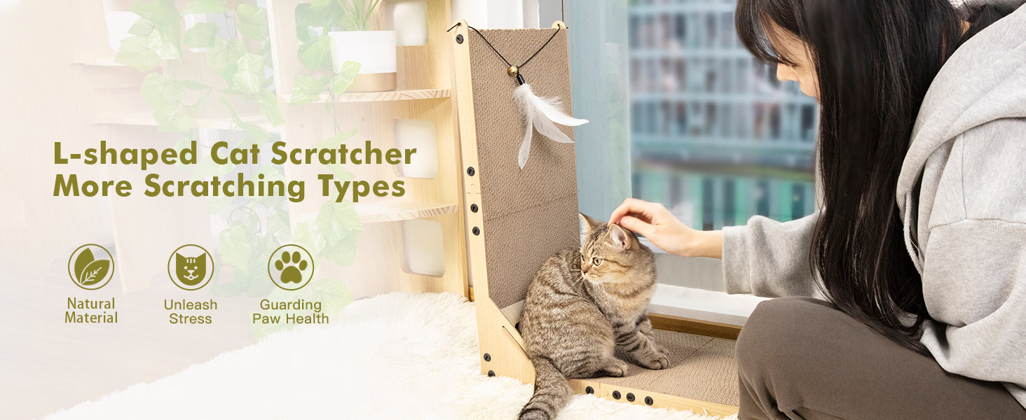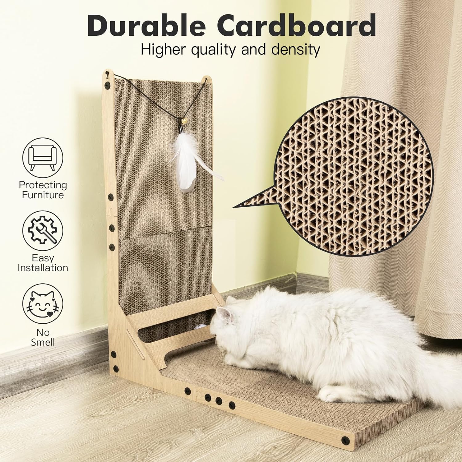 Indulge your cat's playful side with the L-Shape Cat Scratching Board. Satisfy their natural scratching instincts with the unique vertical shape, while keeping your furniture safe from scratch marks. Made from non-toxic materials and easy to assemble, it also comes with organic catnip as a bonus treat. A purr-fect addition to any home.