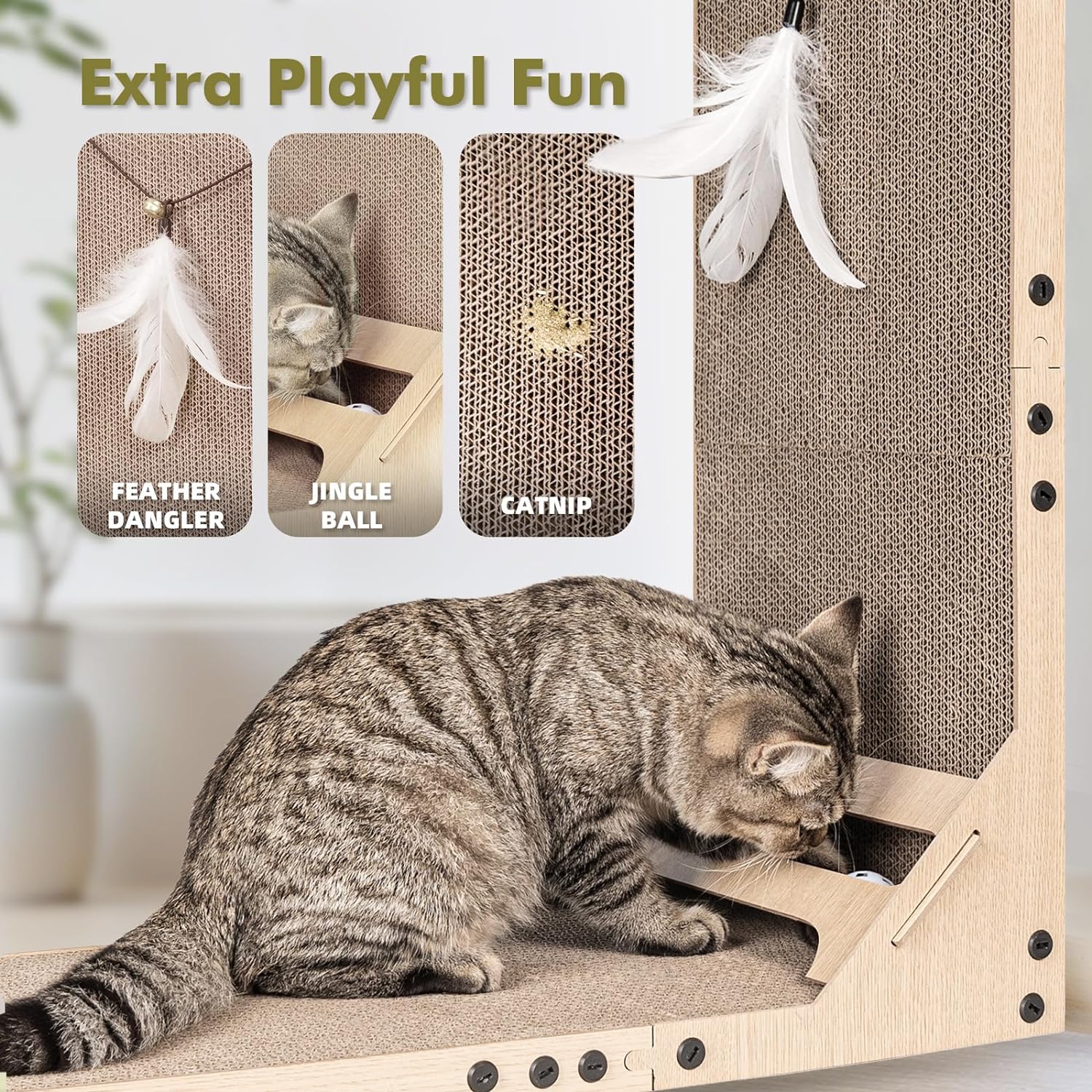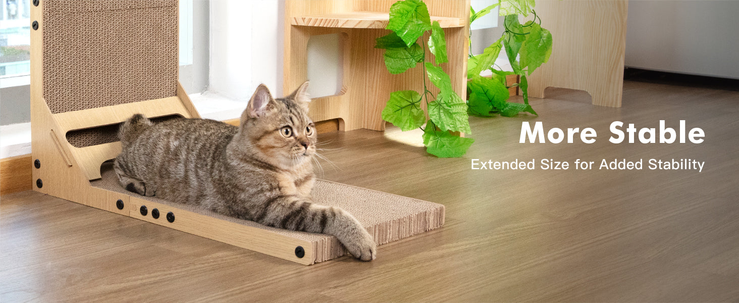 Featuring vertical and horizontal scratch surfaces that can fit against walls and increase stability.
